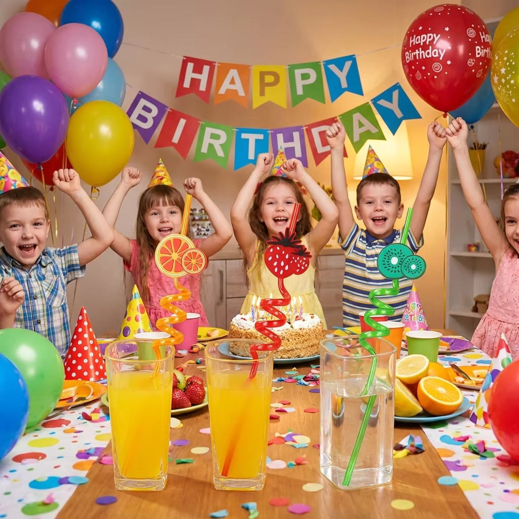 Fruit Shape Curved Straws Reusable Cute Cartoon Drinking Straws for Kids Party